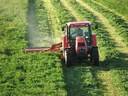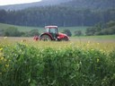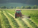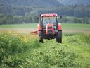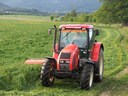 Traktor Zetor seče trávu na seno
